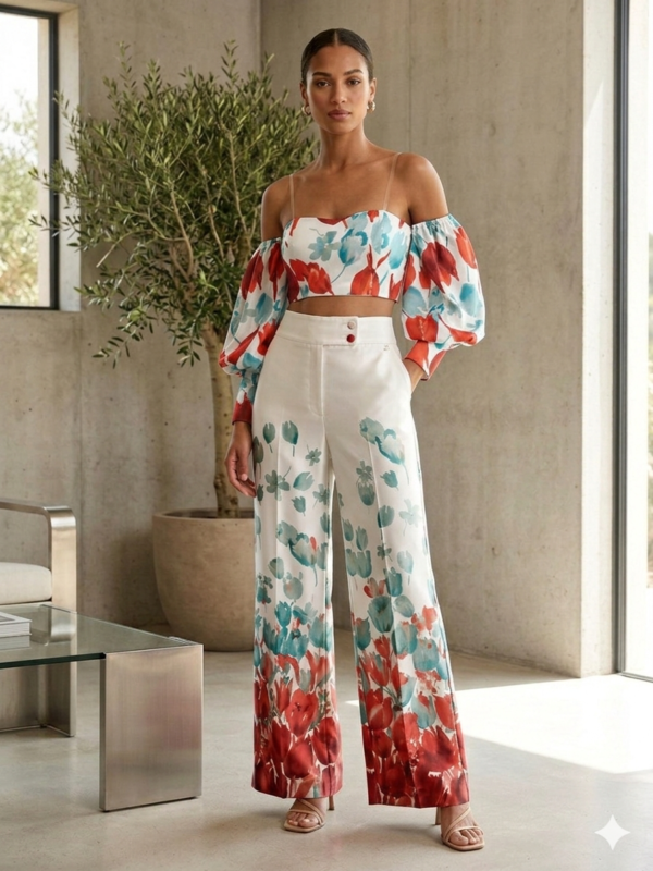 Σατινέ Παντελόνα “Floral Gradient” – Υψηλή Αισθητική & Κίνηση Με Floral top τοπ