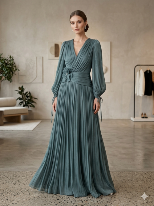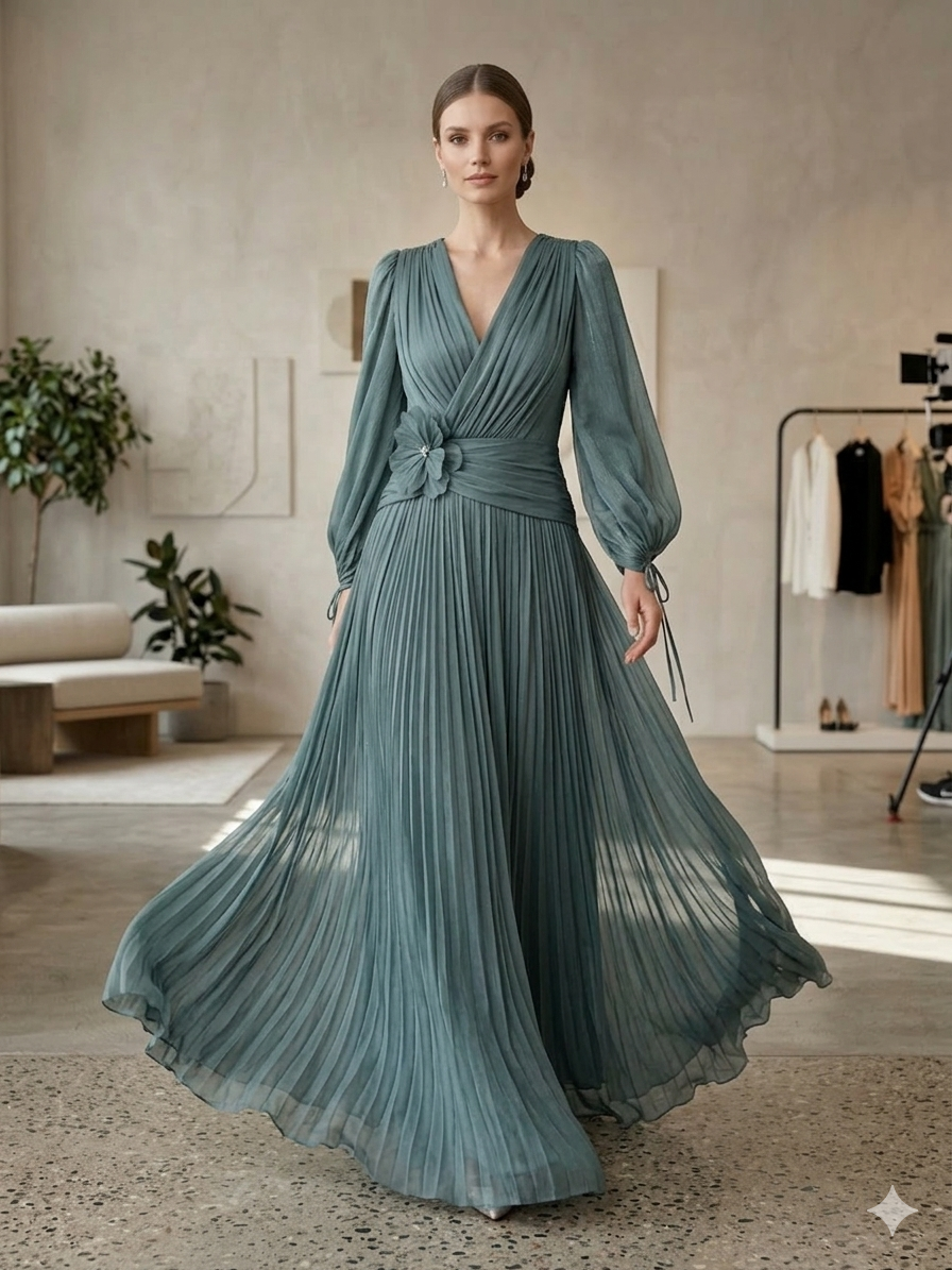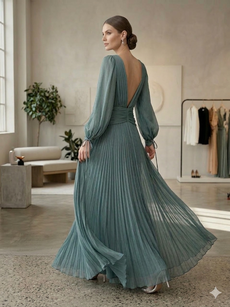 Πλισέ Σιλουέτα: Η maxi φούστα με τις λεπτές πτυχώσεις δημιουργεί έναν υπέροχο όγκο και κίνηση, θυμίζοντας αρχαιοελληνική κομψότητα σε σύγχρονη εκδοχή.