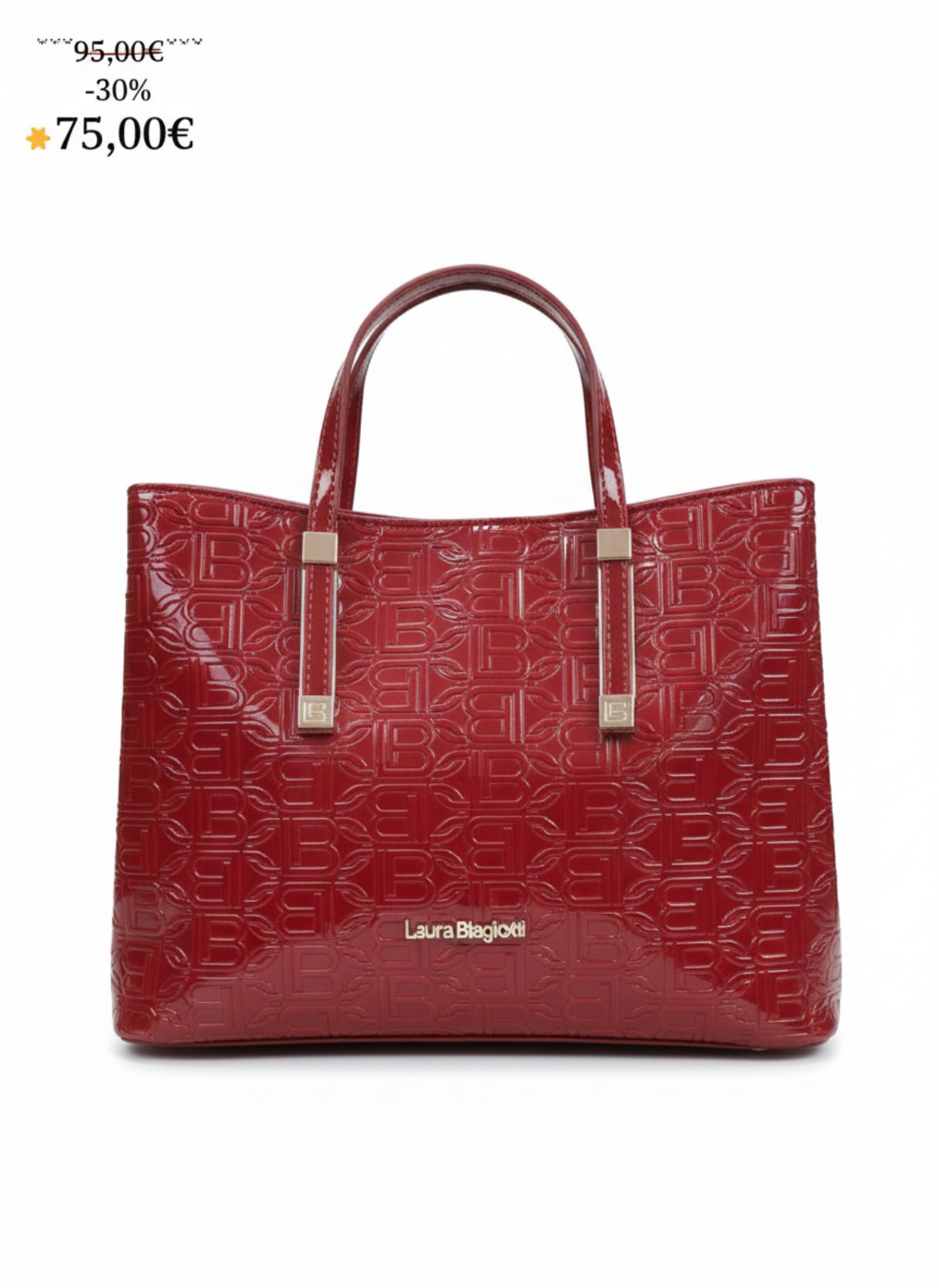 Κατασκευασμένη από υψηλής ποιότητας συνθετικό υλικό με λουστρίνι (patent) φινίρισμα. Όλη η επιφάνεια φέρει ανάγλυφο το εμβληματικό λογότυπο “LB” του οίκου, προσδίδοντας πολυτέλεια και μοναδική υφή.