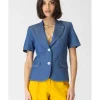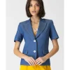 Σακάκι κοντομάνικο σε ύφασμα βαμβακερό τζιν. Διαθέτει εμπριμέ φόδρα εσωτερικά και βάτες. 100% ελληνικής παργωγής από το 1985.