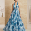Floral Maxi Φόρεμα από Οργάντζα – Blue Peony Dream
